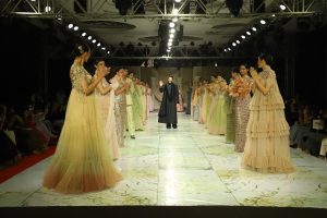 प्रसिद्ध फैशन डिज़ाइनर रॉकी स्टार की कलेक्शन ने आधुनिकता और पारंपरिक सौंदर्य का शानदार संगम प्रस्तुत किया। हल्के रंगों, बहते सिल्हूट्स और नाजुक ड्रेपिंग से सजे परिधानों ने परी-कथा जैसा आकर्षण बिखेरा। हवादार कपड़ों में तैयार हर परिधान में कट, कम्फर्ट और बारीक कारीगरी का सुंदर मेल देखने को मिला। यह कलेक्शन भारतीय विरासत में जड़ा हुआ होते हुए भी आधुनिक अभिव्यक्ति को दर्शाता है।