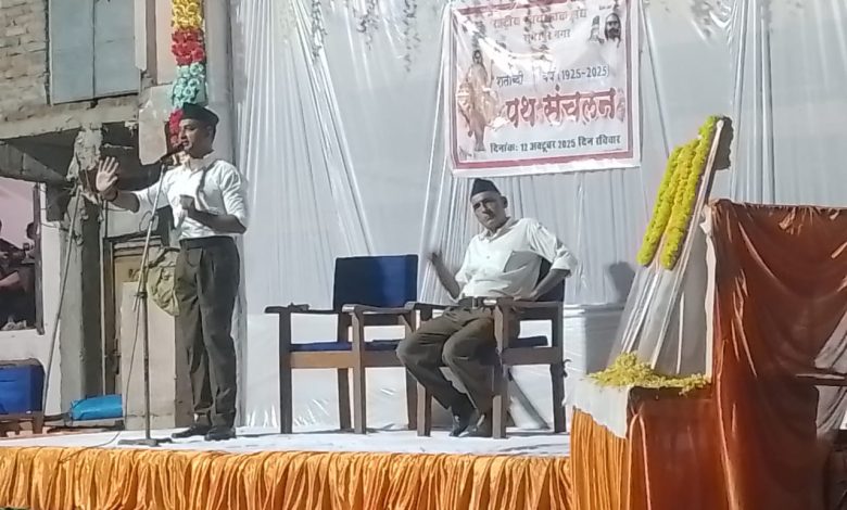 हमीरपुर। राष्ट्रीय स्वयंसेवक संघ की स्थापना के शताब्दी वर्ष और विजय दशमी पर्व के पावन अवसर पर रविवार को कस्बा सुमेरपुर में स्वयंसेवकों ने उत्साहपूर्ण पथ संचलन निकाला। यह आयोजन संघ की गौरवशाली परंपरा और राष्ट्रभक्ति की भावना को जीवंत करता प्रतीत हुआ। पथ संचलन ठंडेश्वरी आश्रम से प्रारंभ होकर मुख्य बाजारों से गुजरा, जहां स्वयंसेवक पूर्ण गणवेश में घोष बैंड की धुन पर कदमताल करते हुए आगे बढ़े। स्थानीय नागरिकों ने फूलों की वर्षा कर स्वागत किया, जो संघ के प्रति जनसमर्थन को दर्शाता है।