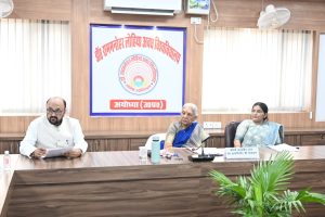 बैठक के दौरान विश्वविद्यालय में चल रहे विकास कार्यों, नये पाठ्यक्रमों के संचालन, कौशल आधारित शिक्षा और रोजगारोन्मुखी प्रशिक्षण कार्यक्रमों पर भी विस्तृत चर्चा हुई। कुलाधिपति जी ने अधिकारियों को निर्देश दिए कि प्रत्येक विभाग अपने शिक्षण कार्यों में तकनीकी संसाधनों का अधिकतम उपयोग करे तथा विद्यार्थियों को व्यवहारिक ज्ञान से जोड़ने के लिए नियमित कार्यशालाएं और सेमिनार आयोजित किए जाएं। उन्होंने कहा कि विश्वविद्यालयों को समाज और राष्ट्र की आवश्यकताओं के अनुरूप शिक्षा के नए मॉडल विकसित करने होंगे ताकि विद्यार्थी भविष्य की चुनौतियों के लिए तैयार हो सकें।