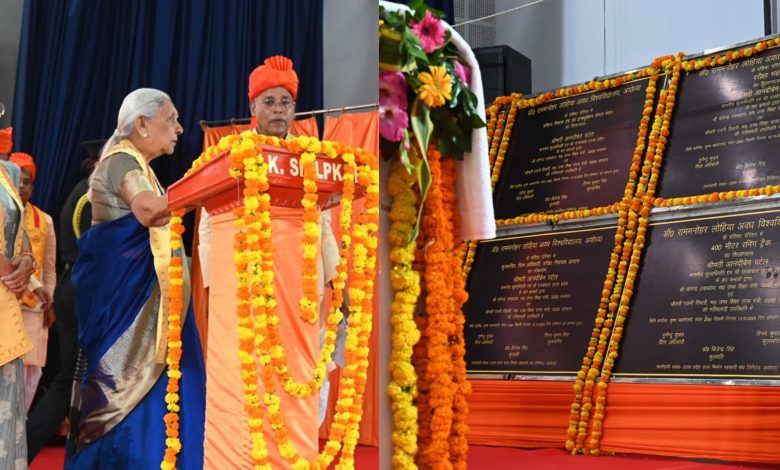 बैठक के पूर्व आयोजित दीक्षांत समारोह में राज्यपाल जी द्वारा विश्वविद्यालय परिसर में निर्मित 400 मीटर रनिंग ट्रैक, 8 कोर्ट इंडोर मल्टीपरपज हॉल, कौशल विकास हब एवं इनक्यूबेशन सेंटर भवन, परीक्षा भवन का शिलान्यास एवं कुलसचिव, वित्त अधिकारी, परीक्षा नियंत्रक आवास और कुलपति आवास का लोकार्पण भी राज्यपाल जी द्वारा किया गया।