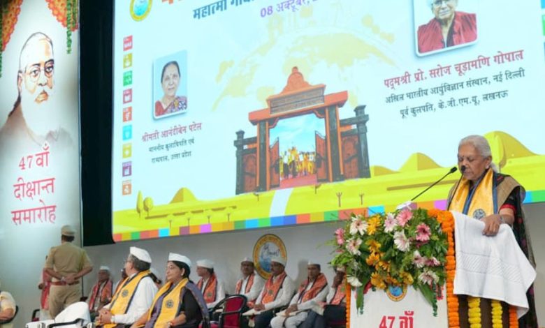 दीक्षांत समारोह को संबोधित करते हुए राज्यपाल जी ने सभी विद्यार्थियों को हार्दिक बधाई दी और उनके उज्जवल भविष्य की कामना की। उन्होंने कहा कि यह विश्वविद्यालय राष्ट्रपिता महात्मा गांधी के नाम और उनके मूल्यों पर स्थापित है, इसका यह 47वां दीक्षांत समारोह हमारे लिए अत्यंत गौरव का अवसर है।
